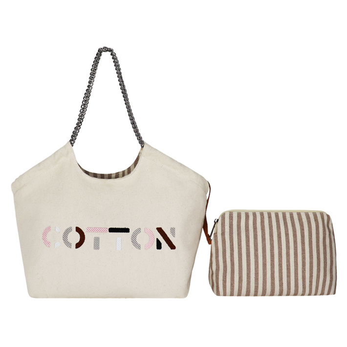定制女包美拉德色系小香風帆布包 刺繡條紋牛仔紋鏈條單肩手提包