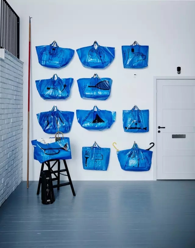 宜家藍可以是一個系列。釘幾顆釘子,畫幾幅簡筆畫,讓白色的墻上裝飾著明亮的宜家藍,既有藝術的美感,又具收納的作用!