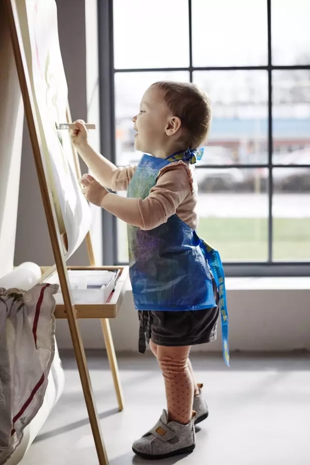 喜歡涂涂畫畫的寶貝是最有創造力的藝術家,不能因為擔心畫筆會弄臟衣服就限制TA們創作。把購物袋改裝成圍裙,防水材質能讓寶貝盡情在藝術海洋中遨游。