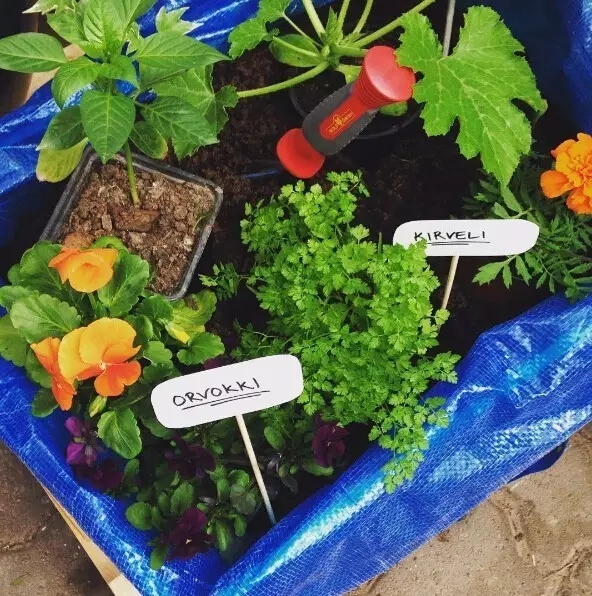 把家里種植的許多小盆栽一起裝在改裝容器里,可以營造出種植園地的氛圍。在天氣變化時,也能方便地把