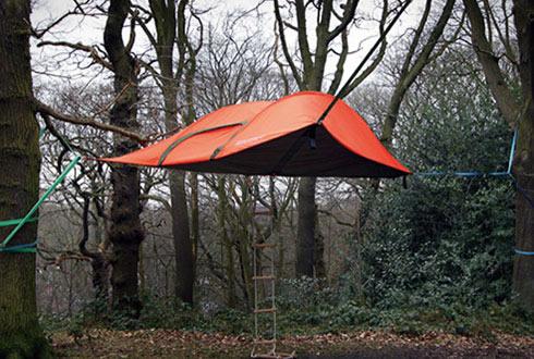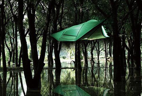 看看這款帳篷,給人一種懸浮在空中的錯覺。該帳篷通過高強(qiáng)度的繩索吊在四周的樹桿上,乍一看起來像吊床,既安全又保證了隱私。此外,這款帳篷還附加了一個繩梯,這樣的話你在晚上仍然可以順暢地爬進(jìn)帳篷。