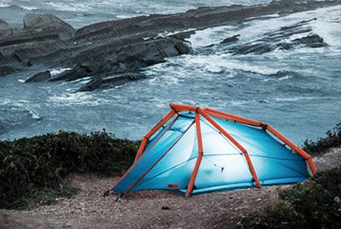 這款帳篷的支撐結(jié)構(gòu)是一種“充氣梁”,你可以在一分鐘之內(nèi)給帳篷充滿氣,將其支起來。