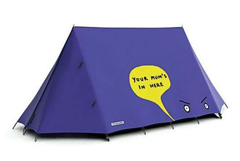 這款帳篷上寫了一個標(biāo)語:“你媽在這兒!”,雖然粗魯,但對偷窺者是一個警告。