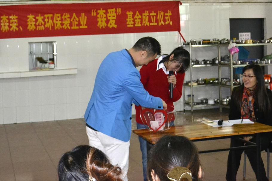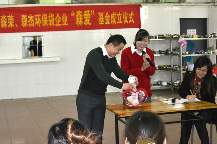 2012年12月3日這一天廣州市森榮手袋制造有限公司、廣州森杰無紡布制品實(shí)業(yè)有限公司正式成立“森愛基金”。