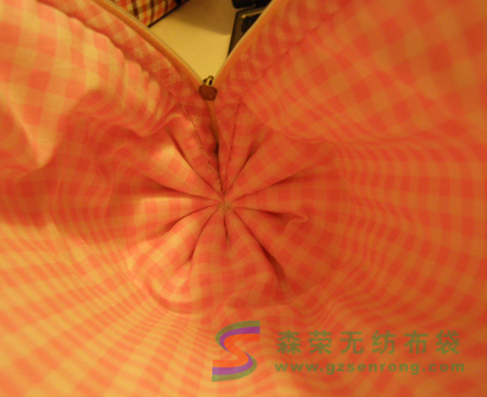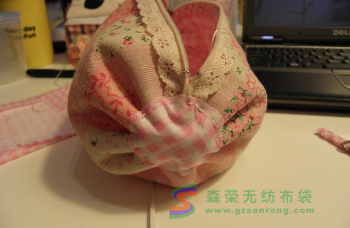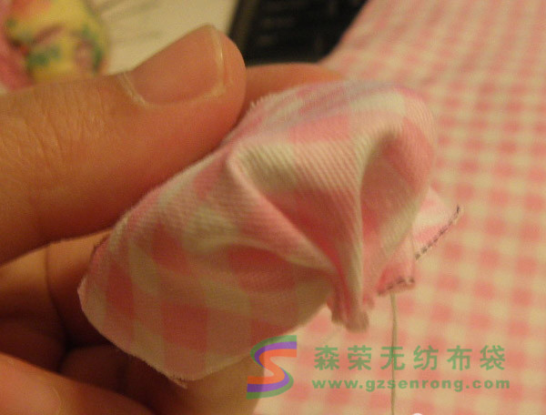 此時最好剪一塊布對封口處進行加固,因為拉緊的地方有可能會松掉,而這塊布以后會被擋住,針腳神馬的不用太在意: